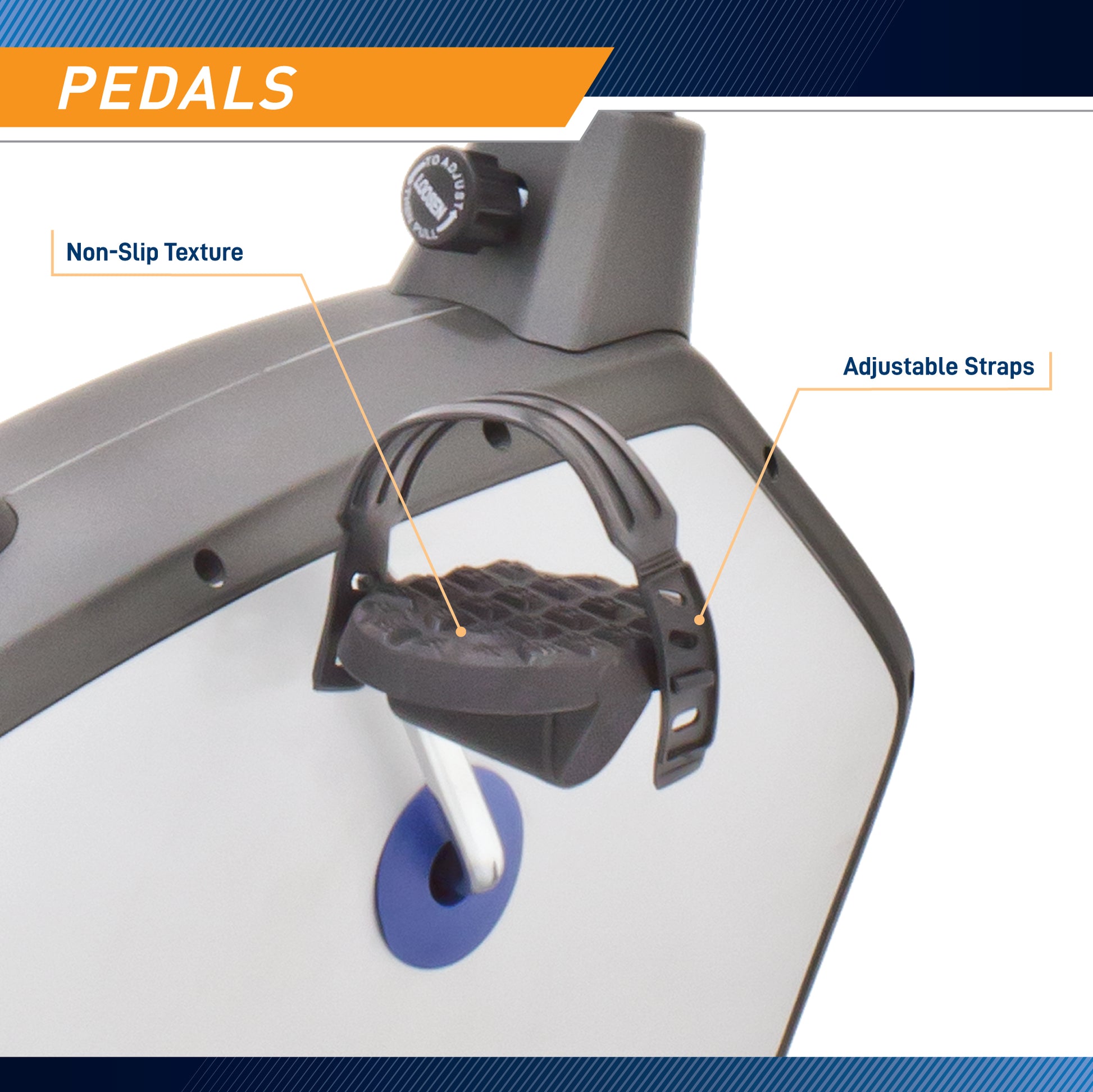 Adjust the seat to increase stride for individual user leg lengths.